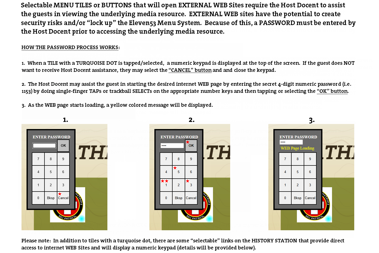 EXTERNAL WEB Sites that are accessed from the DOCENT, SUMMER ACTIVITIES and WINTER ACTIVITIES Stations