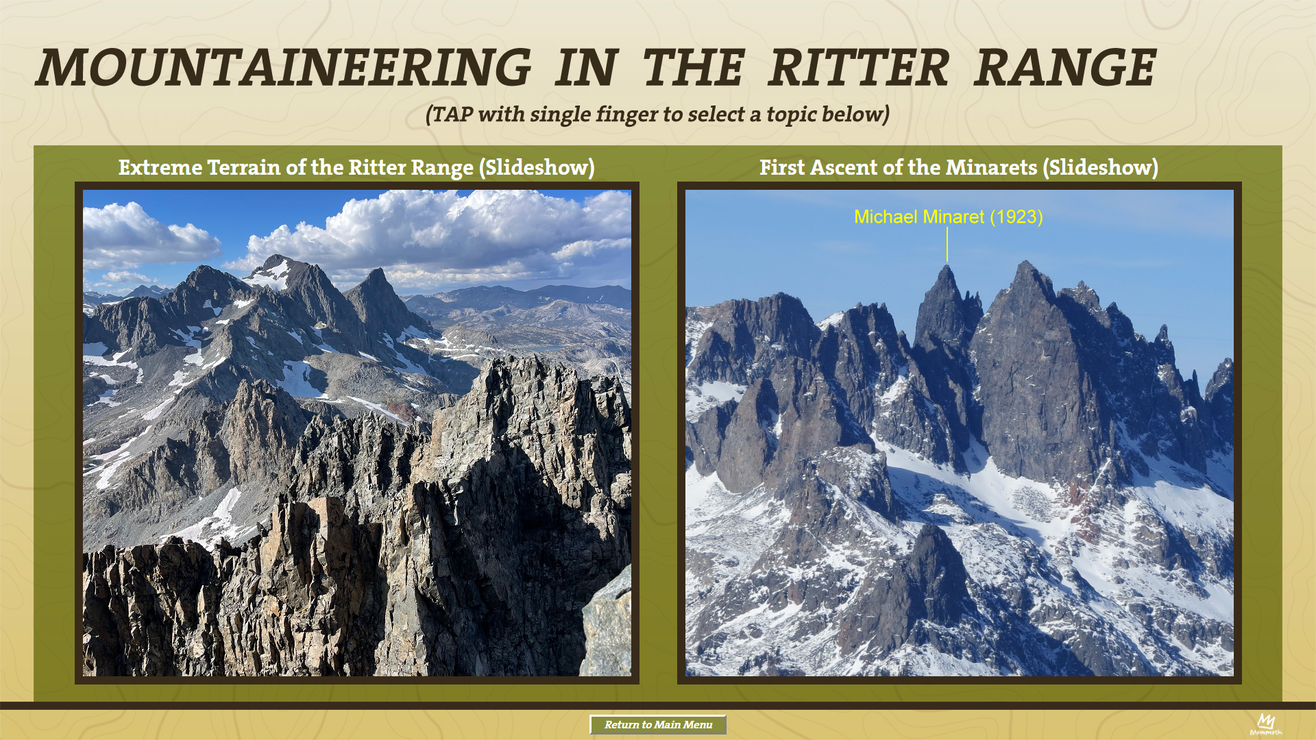 TOUCHSCREEN "REGIONAL FLYOVER" STATION: Mammoth Mountain (Home Zone) |